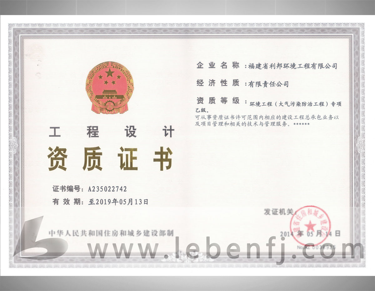 • 環(huán)境工程設(shè)計(jì)專項(xiàng)資質(zhì)(乙級(jí))